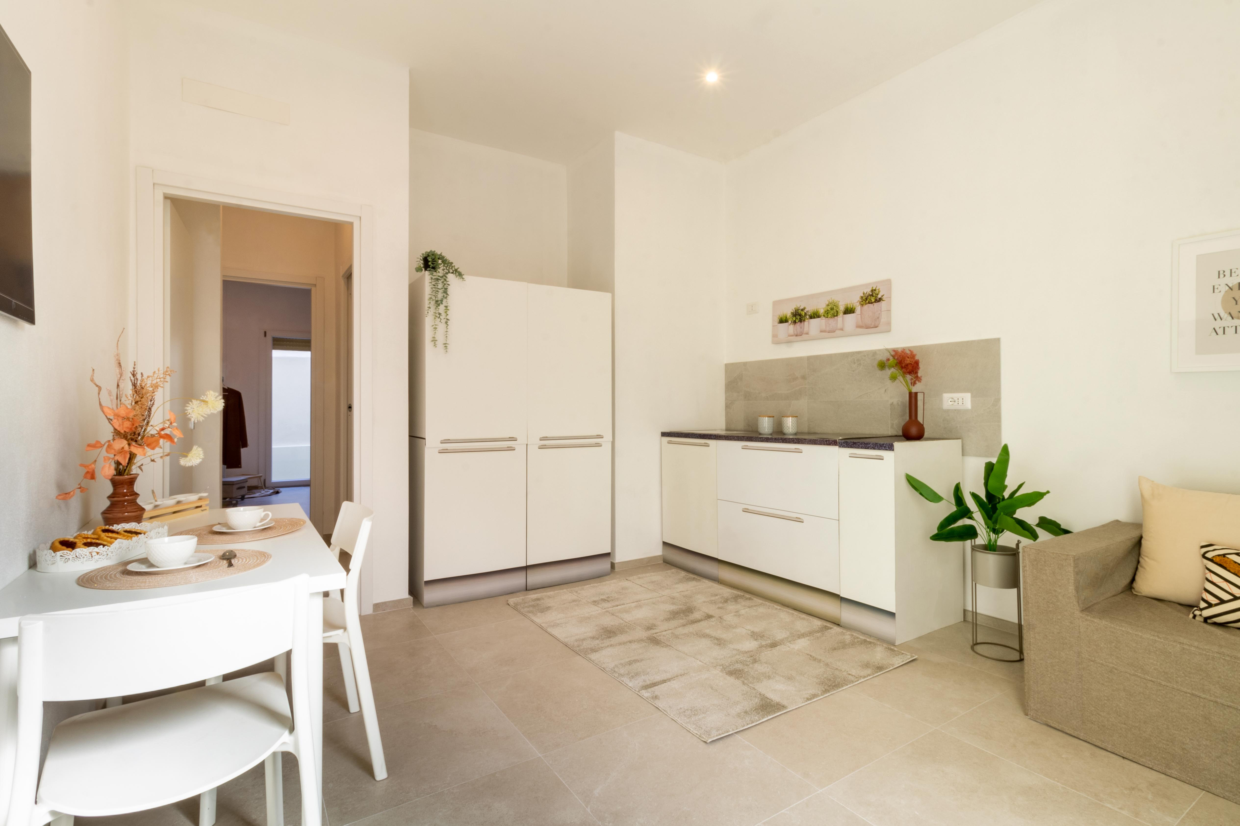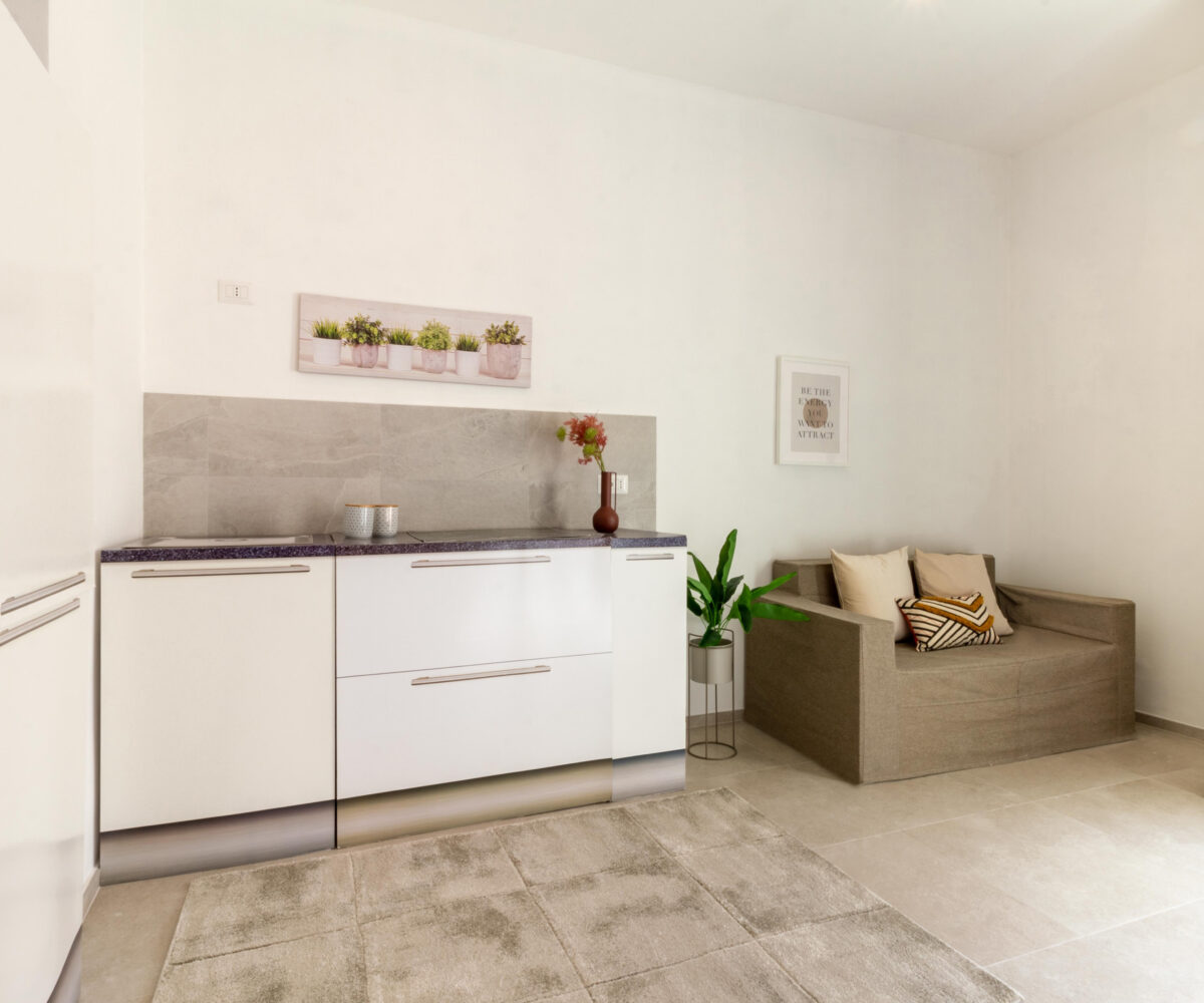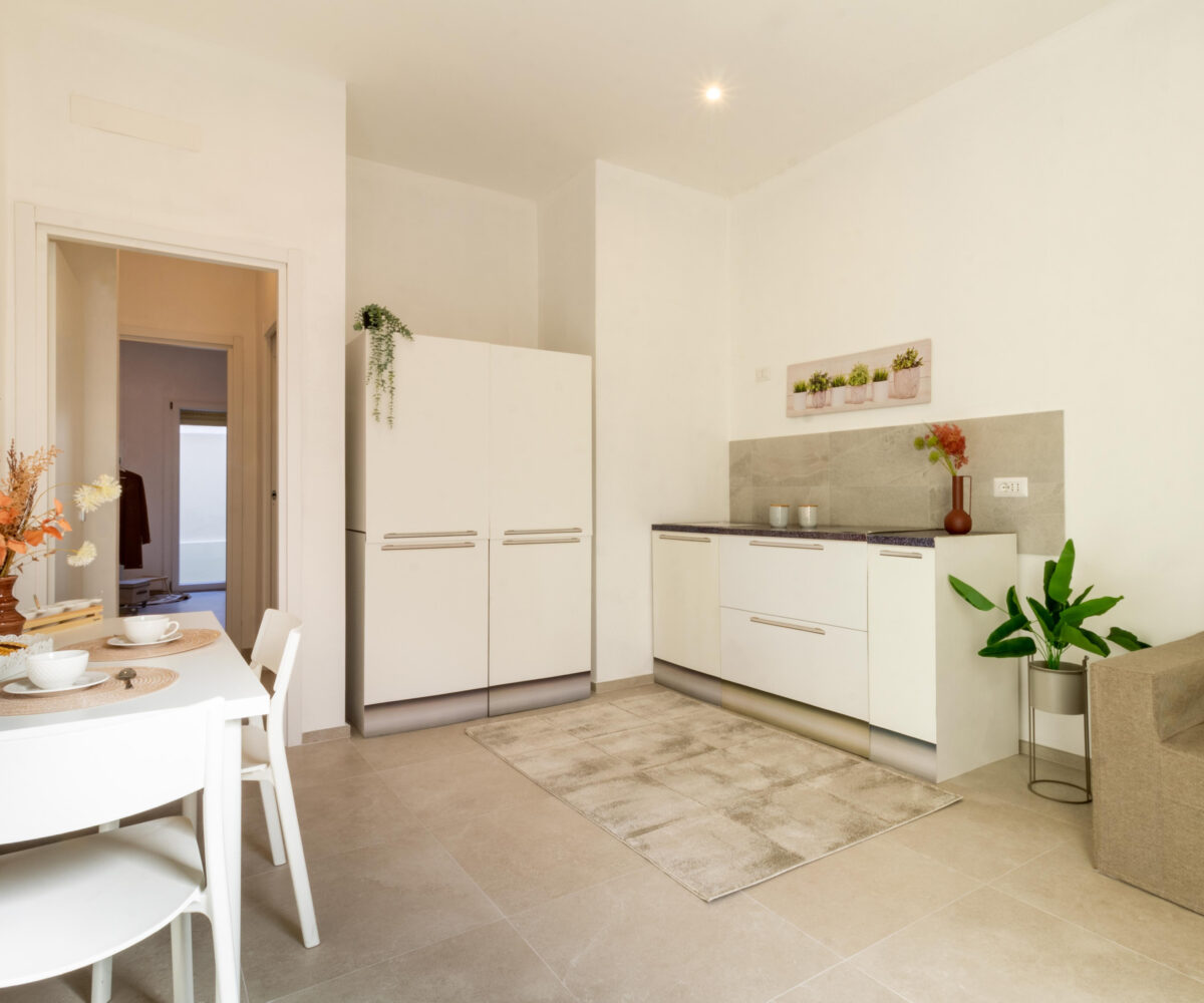 Ti presento Casa Margherita. Si tratta di un bilocale ristrutturato di 42 mq commerciali, situato al piano rialzato. Durante la ristrutturazione, è stato rifatto il massetto, l’ impianto idrico ed elettrico, sostituiti gli infissi e la pavimentazione. L’appartamento ha un ingresso indipendente, soggiorno con angolo cottura, camera da letto matrimoniale, bagno e un cortile privato di 20 mq. con esposizione interna. Sarà dotato di due pompe di calore caldo/freddo. Luminoso e moderno è pronto all’uso